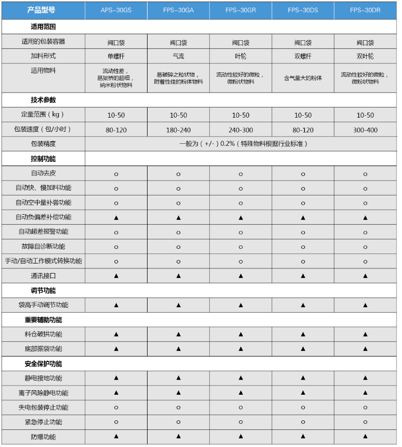 注:“o”表示標(biāo)準(zhǔn)配備的功能;“▲”表示需要選購的功能;“×”表示不具備的功能