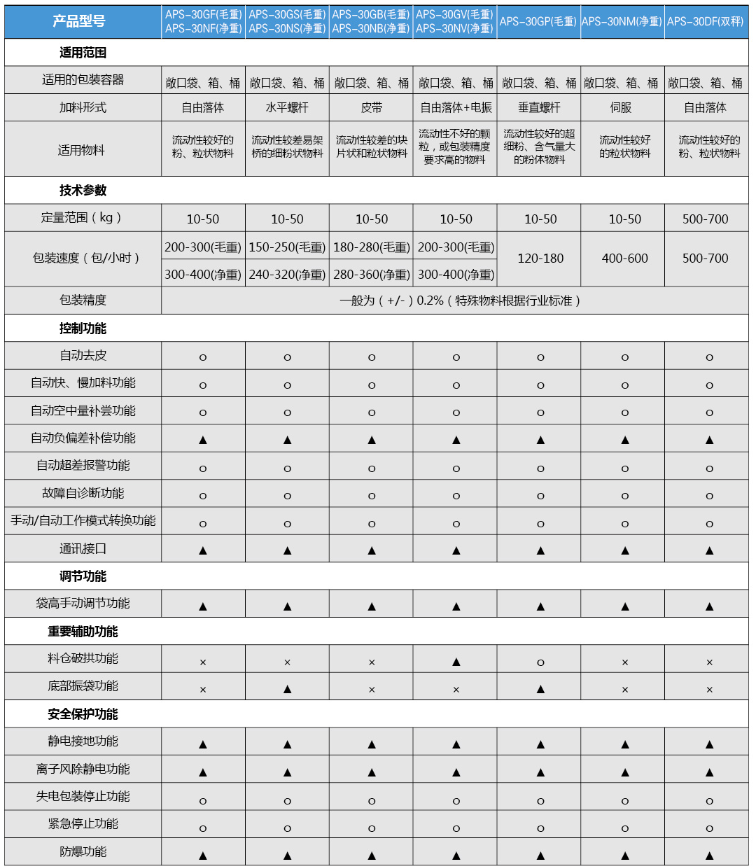注:“o”表示標準配備的功能;“▲”表示需要選購的功能;“×”表示不具備的功能